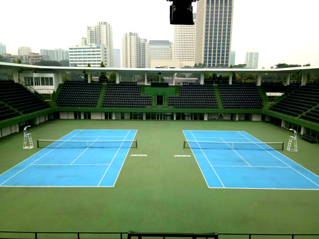 Tennis Flexi 1 Field in GBK is located inside Tennis Outdoor Stadium (Center Court). The layout of tennis field is already using international standard (23,77 m x 10,97 m). This field is also equipped with toilets, changing rooms, and praying rooms.