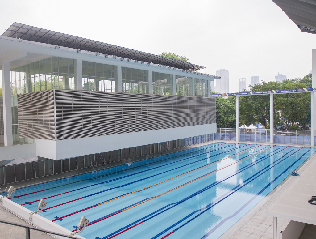 Aquatic Stadium Gelora Bung Karno established since 1962. Aquatic Stadium Gelora Bung Karno is the largest international standard pools in South East Asia. After the renovation for 18th Asian Games 2018, Aquatic Stadium consists of 4 (four) international standard pools, the main pool with a size of 50 mx 25 m x 3 m with 8 lines, water polo pool with a depth of 3 m, beautiful diving pool with size 21 m x 25 m x 5 m and warming up pool on the ground floor with a size of 20 m x 50 m 1.4 m to 2 m. Aquatic Stadium Gelora Bung Karno is already equipped with public supporting facilities such as toilets, mosques, sound system, VIP room, player’s changing room, office spaces, medical room, parking area, and tribune with the capacity of ± 8.000 seats. Aquatic Stadium can be used for tournaments (national and international tournaments) or for daily routine exercices or practice.